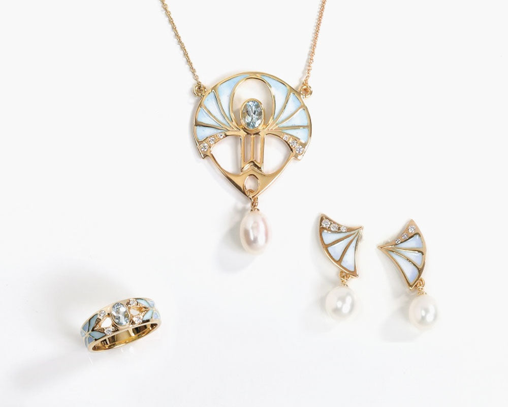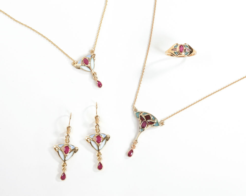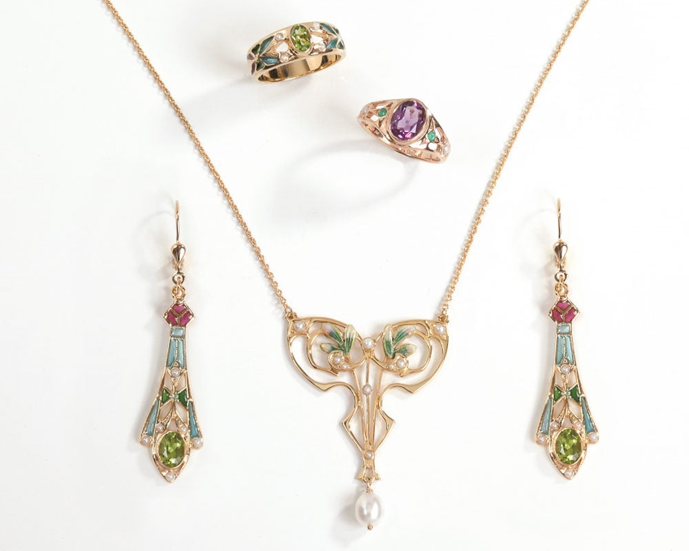 Wir lieben den Jugendstil und die Schmuckvorlagen des Art Nouveau. Wir haben es uns zur Aufgabe gemacht, die Schönheit alter Schätze neu aufzulegen und kunstgeschichtlichen Nachbildungen einen modernen Zeitgeist einzuhauchen. Seit über 50 Jahren gehen wir unserer Liebe zum Jugendstil und floralen Mustern nach und haben ein großes Repertoire an zauberhaften und romantischen Schmuckstücken aufgebaut.